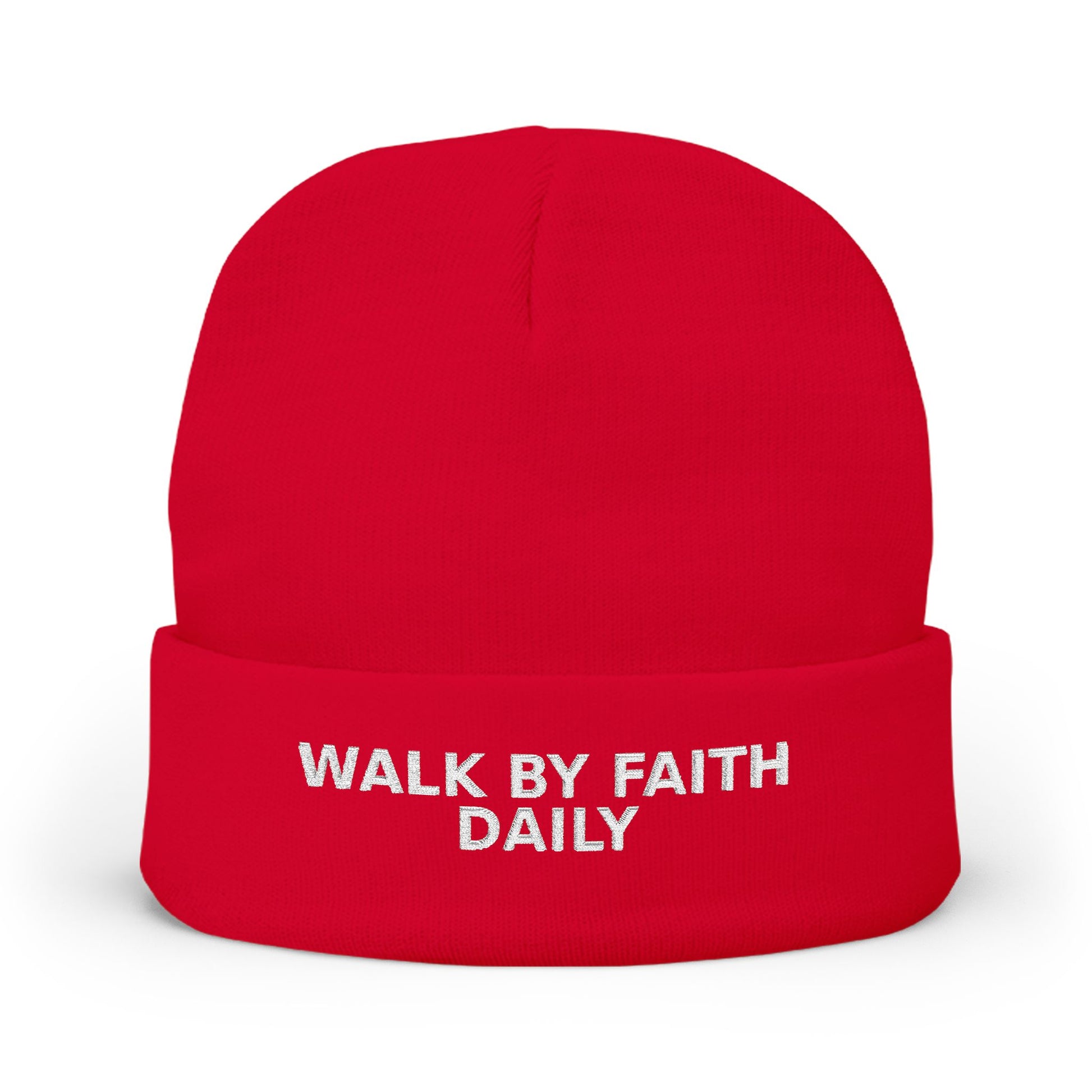 Walk By Faith Daily Embroidered Knit Beanie — Cozy Winter Hat with Positive Text